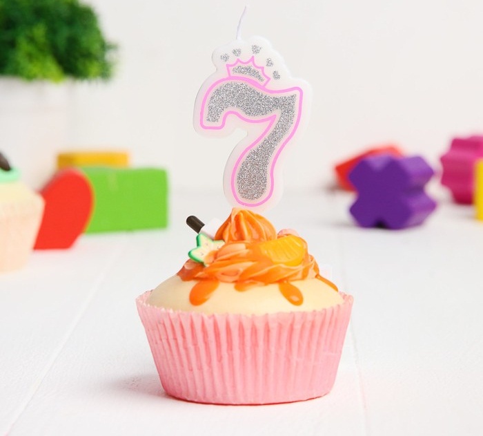 3462541 Свеча в торт "Цифра 7.Серебро с короной" на палочке.Высота 5,5 см.