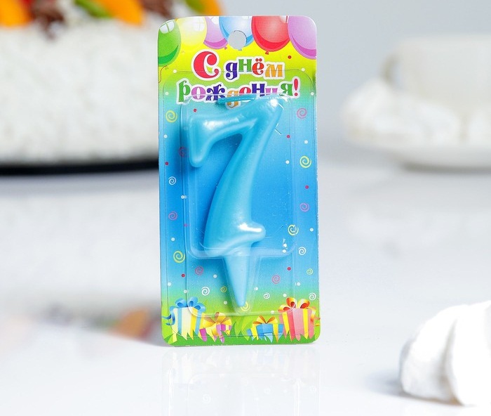 3938151 (3127) Свеча в торт "Цифра 7.Голубой металлик" Высота 7 см.