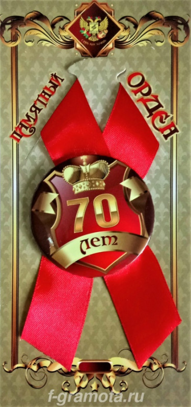 ФГ ORD000043 Орден "Юбиляр 70 лет" с креплением на булавку.Металл