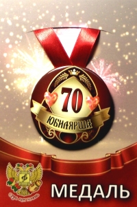 ФГ ZMET00016 Медаль металл "70 лет! Юбилярша" на атласной ленте