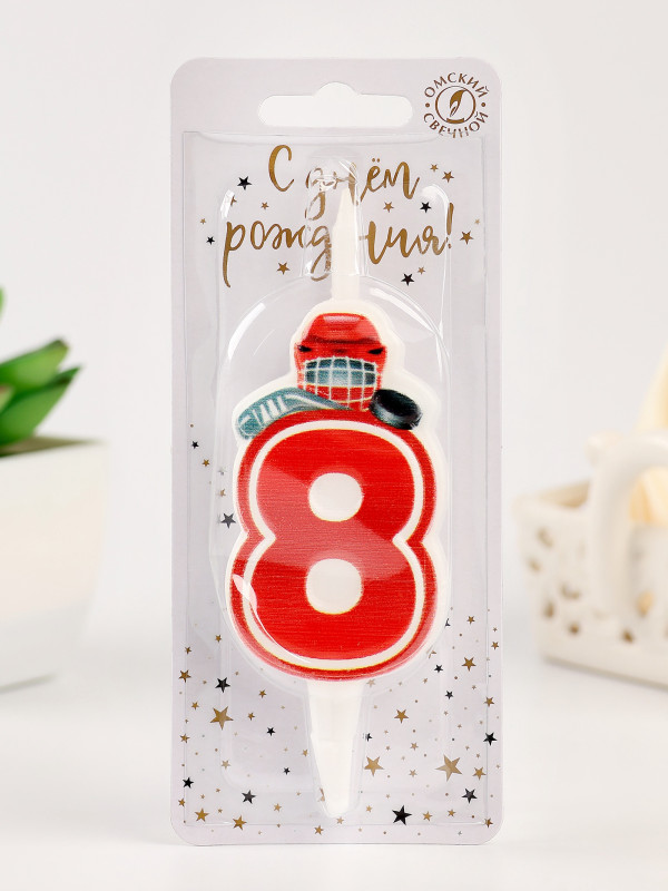 10873692 (5778) Свеча в торт "Цифра 8. Хоккей" Высота 12,5 см.