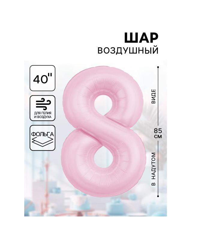10930102 (АГ 942275) Зефирно розовая Slim фольгированная "Цифра 8" Высота 85 см.