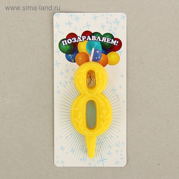 1528464 Свеча для торта "Цифра 8. Желтый узор"
