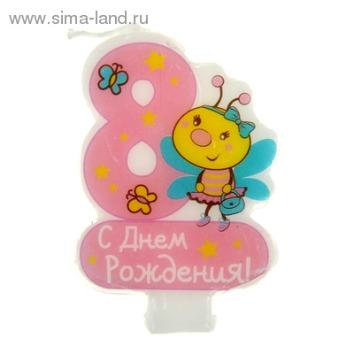 233033 Свеча для торта "Цифра 8.С Днем рождения" Пчелка