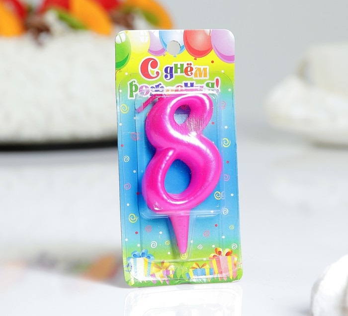 3938152 (3128) Свеча в торт "Цифра 8.Малиновый металлик" Высота 7 см.