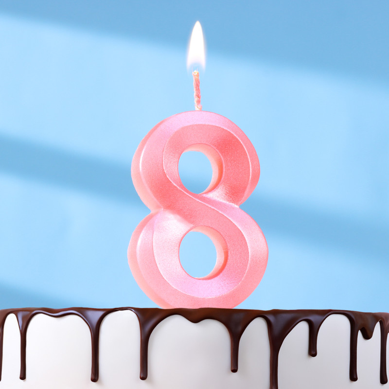 6536347 Свеча в торт "Цифра 8 Розовый металлик" Высота 6,5 см.