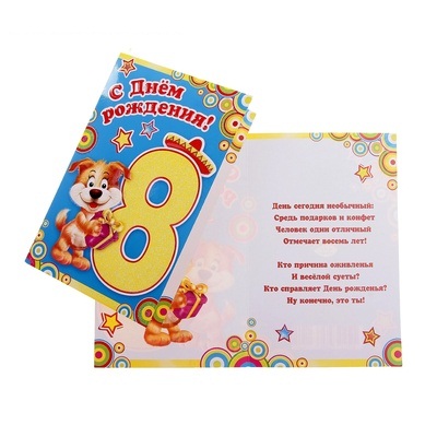 783960 (2-46-10401 А) Открытка "8 лет.Щенок с подарком" Формат А5