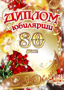 ФГ AF0000214 Диплом юбилярши "80 лет" Формат А5