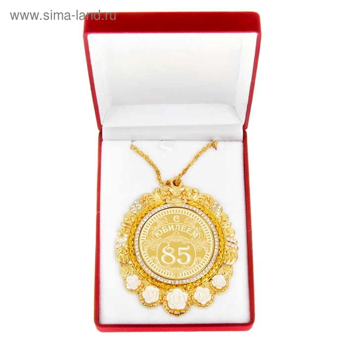 838127 Медаль "С Юбилеем 85 лет!" в бархатной коробке на цепочке