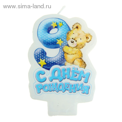 1003760 Свеча для торта "Цифра 9.С Днем рождения.Мишка"