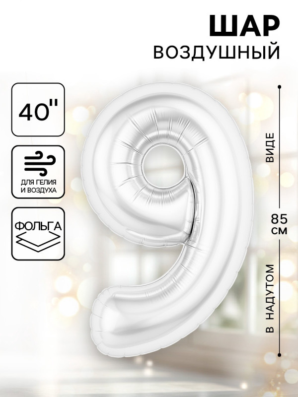10924297 (АГ 941629) Жемчужно белый Slim фольгированная "Цифра 9" Высота 85 см.