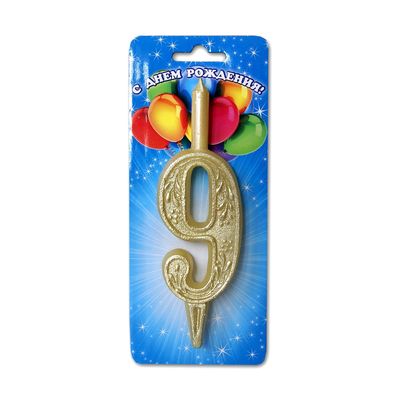 1221549 (3409) Свеча в торт "Цифра 9. Золотой узор"