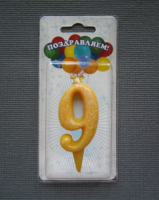 2185609 Свеча в торт "Цифра 9. Желтая с блестками"