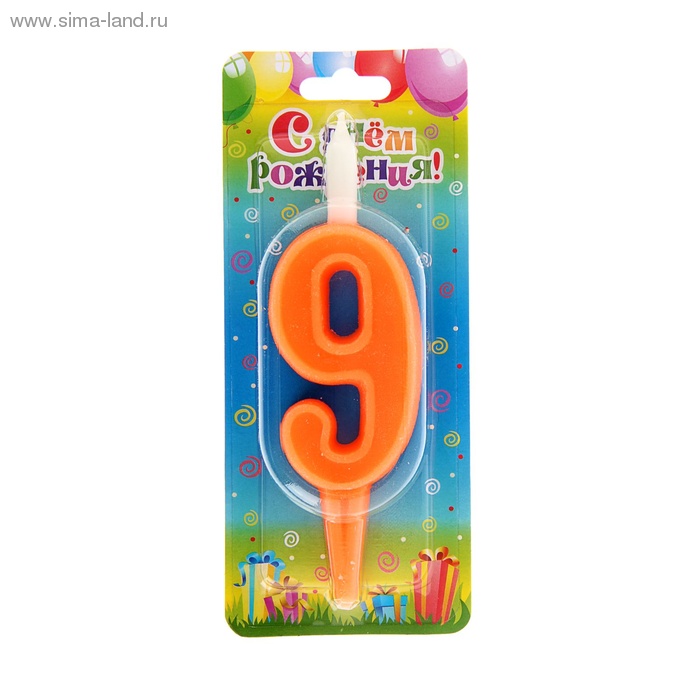 3109 Свеча для торта "Цифра 9" Цвет персиковый