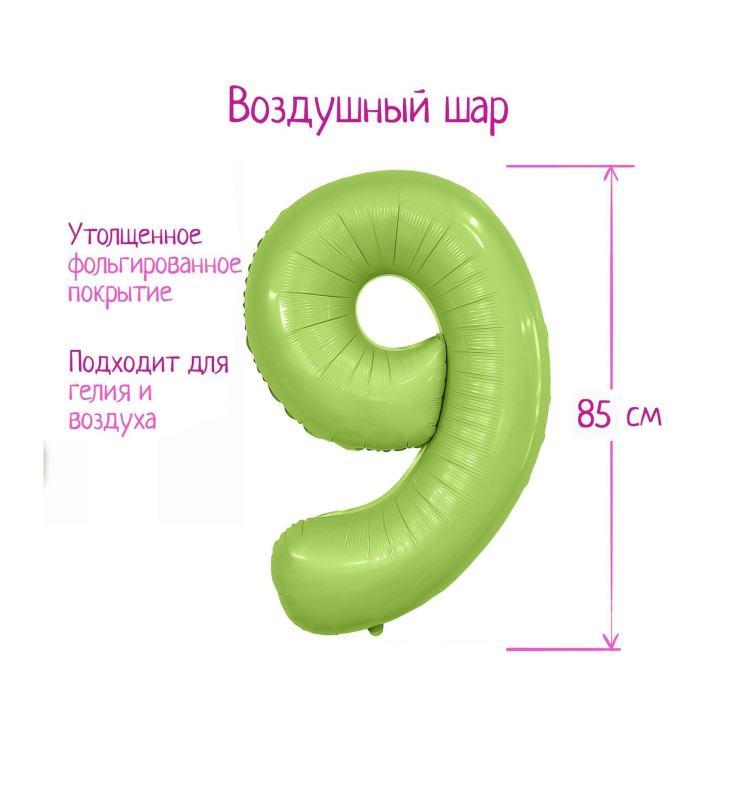 9517502 (АГ 222124) Фисташковая фольгированная "Цифра 9" Высота 100 см.