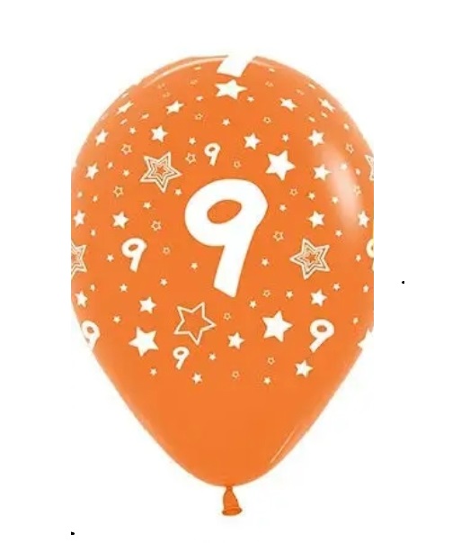 SE 612109/3 Оранжевый 5-сторонний шарик "Цифра 9: Звезды" D 30 см. (с гелием)