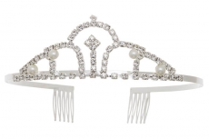 ТЕ 336198 Диадема серебро с жемчужинами с зубчиками.Высота 3,5 см.