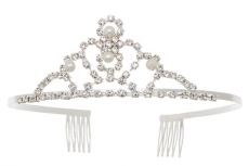 ТЕ 336202 Диадема серебро с жемчужинами с зубчиками.Высота 3,5 см.