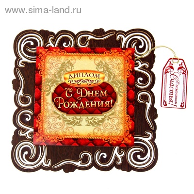 1028234 Диплом "С Днем рождения!" в деревянном обрамлении