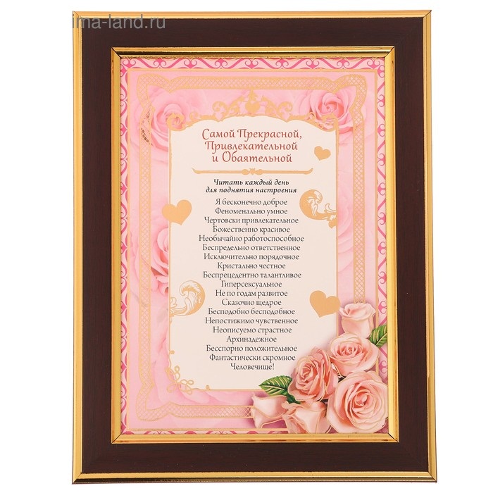 2498479 Диплом в рамке "Самой Прекрасной, Привлекательной и обоятельной" Формат А5