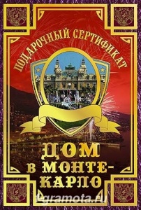 ФГ SPL000005 Подарочный сертификат "Дом в Монте-Карло" в твердом переплете.Формат А6