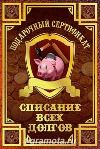 ФГ SPL000011 Подарочный сертификат "Списание всех долгов" в твердом переплете.Формат А6