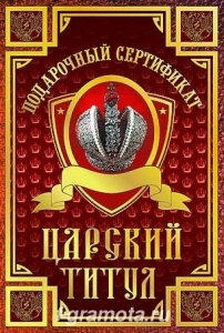 ФГ SPL000024 Подарочный сертификат "Царский титул" в твердом переплете.Формат А6