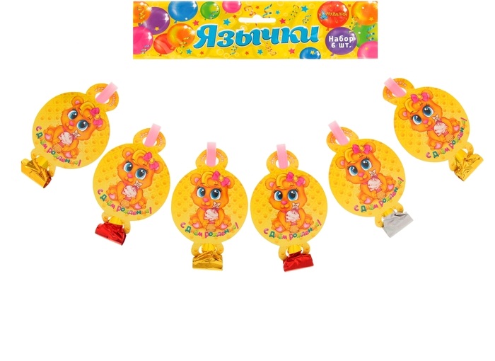 1030713 Набор язычков-гудков "С Днем рождения! Мишка с бантиком" (6 шт.)