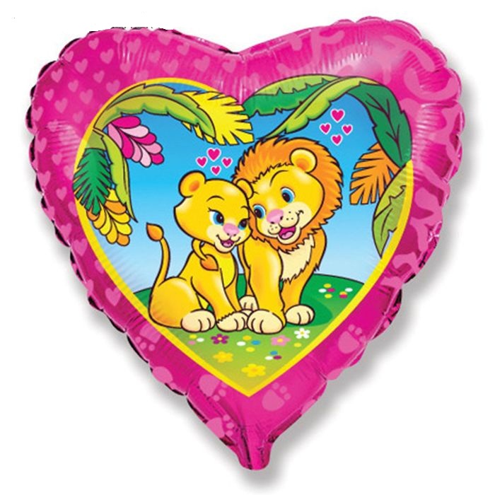 1260856 (1202-0420) Фольгированное сердце "Влюбленные львы" Диаметр 48 см.