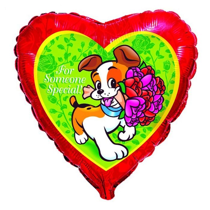 1260885 (1202-0502) Фольгированное сердце "Щенок с букетом" Диаметр 48 см.