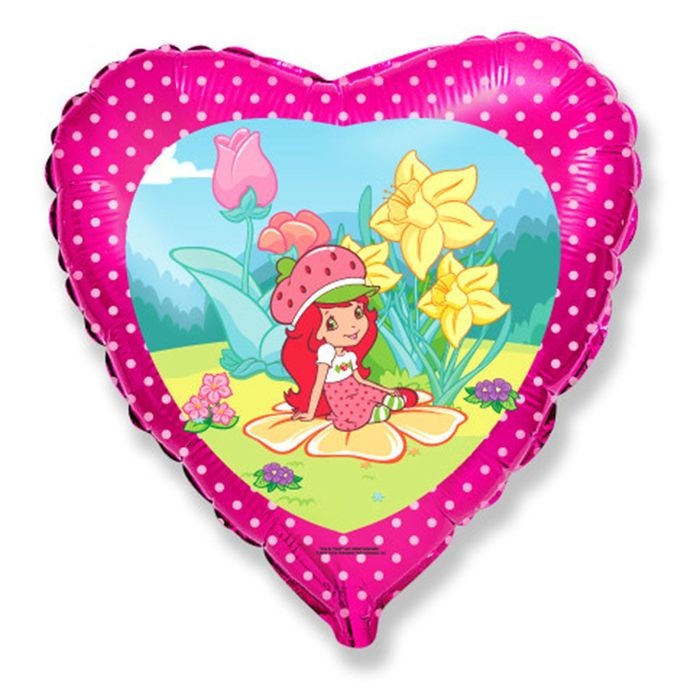 1260894 (1202-1190) Фольгированное сердце "Девочка клубничка в цветах" Испания