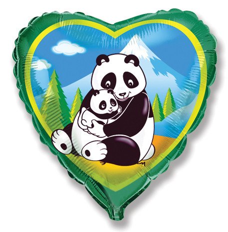 1260837 (БР 201601) Фольгированное сердце "Семья панды" Диаметр 48 см.