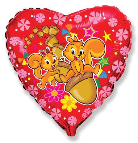 1260854 (БР 201684) Фольгированное сердце "Веселые белки" Диаметр 48 см.