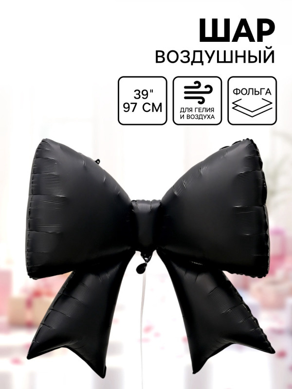 10947669 Черный большой фольгированный бант. Размер 97 см.