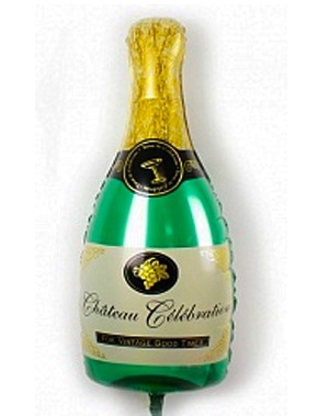 Ч 6714 Фольгированная фигура "Зеленая бутылка шампанского" Высота 99 см. (с гелием)