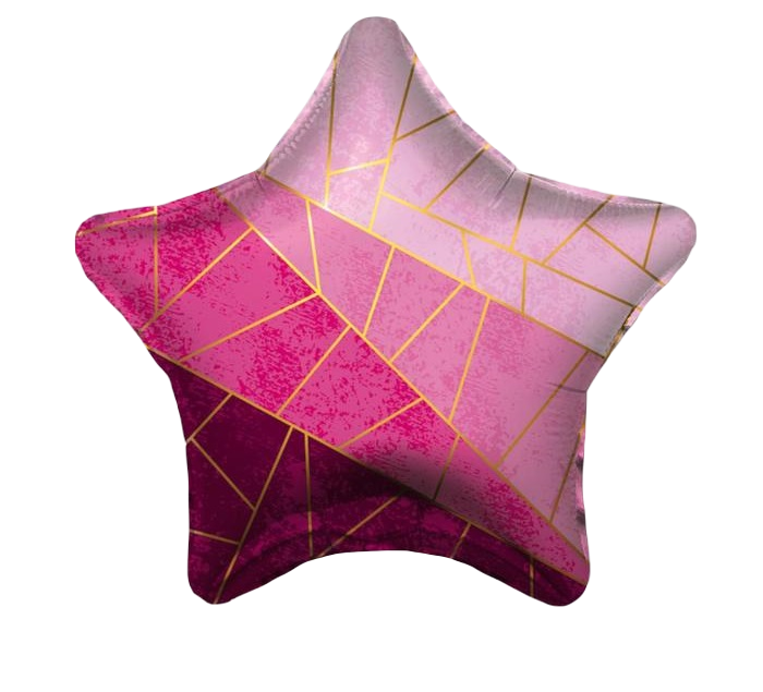 АГ 5254998 Розовая глянцевая фольгированная звезда "Золотые диагнали" D 45 см. (с гелием)