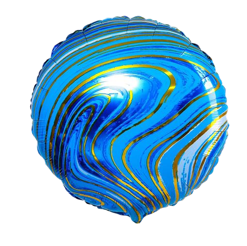 5275743 Голубой глянцевый фольгированный круг "Золотой мрамор" D 45 см. (с гелием)