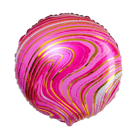 5275745 Розовый глянцевый фольгированный круг "Золотой мрамор" D 45 см. (с гелием)
