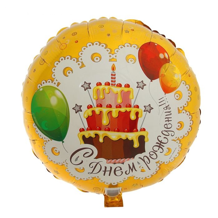 1260826 (1202-1926) Фольгированный желтый круг "С Днем рождения! Торт и шарики" Испания