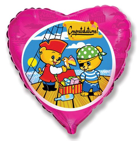 БР 201595 Фольгированное сердце " Happy Birthday! Мишки - пираты" Размер 48 см.