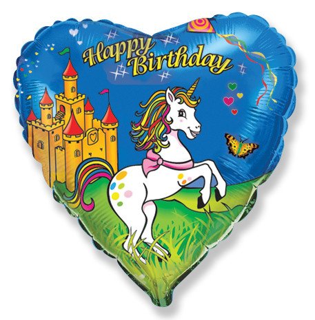 1246880 (БР 201612) Фольгированное синее сердце "Happy Birthday! Единорог" Испания