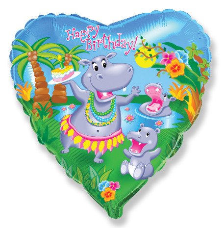 БР 201663 Фольгир.сердце " Happy Birthday! Танцующий бегемот" Размер 48 см.