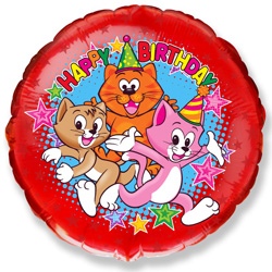 БР 401552 Фольгированный круг "Happy Birthday! Котята" Диаметр 45 см.Испания