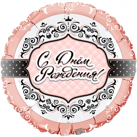 БР 411564 Фольгированный круг "С Днем рождения! Розовое золото" Диаметр 45 см.