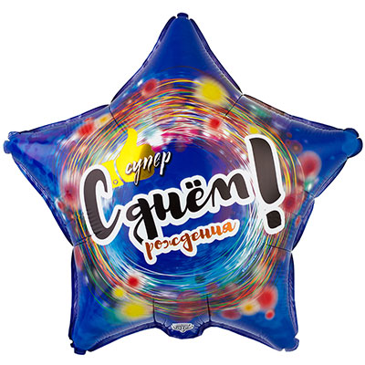 ВЗ 1202-3092 Фольгированная звезда "С Днем рождения! Супер!" D 45 см. (с гелием)