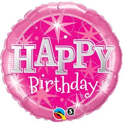 QLT 37913 (1202-1941) Фольгированный круг "Happy Birthday! Розовые звезды" D 45 см. (с гелием)