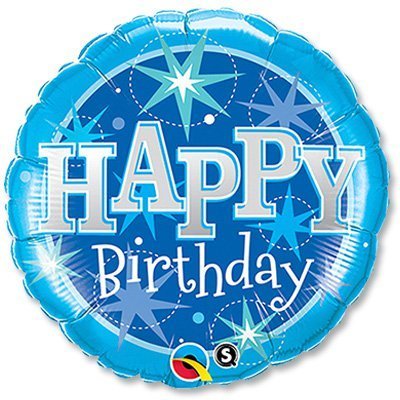 QLT 37919 (1202-1939) Фольгированный круг "Happy Birthday! Синие звезды" D 45 см. (с гелием)