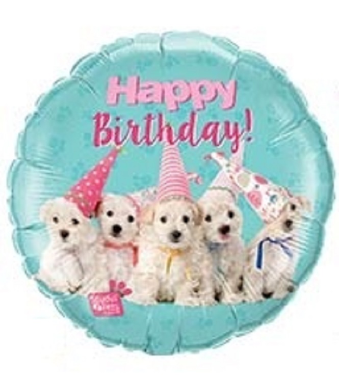 QLT 57620 (1202-2918) Фольгированный круг "Happy Birthday! Щенята" D 45 см. (с гелием)