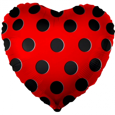 Ч 13025 Фольгированное сердце "Красное в черный горох" Размер 46 см.Китай