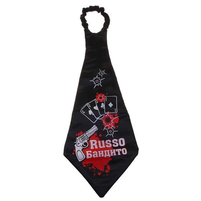 745435 Атласный галстук гигант "Russo бандито" на резинке. Длина 70 см.